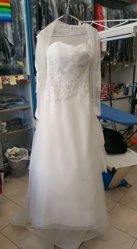 che tratta i vostri abiti da sposa con cura utilizzando i migliori macchinari come lavatrici e asciugatori professionali.